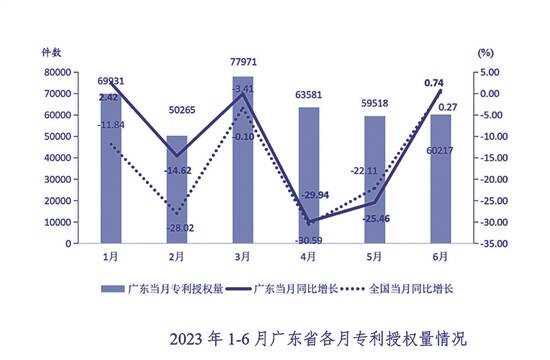截至6月底,广东累计专利授权量584.5万件,占全国总量的18.4%,其中,累计发明专利授权量71.4万件,占全国总量的15.5%。广东累计专利授权量和累计发明专利授权量均居全国首位。