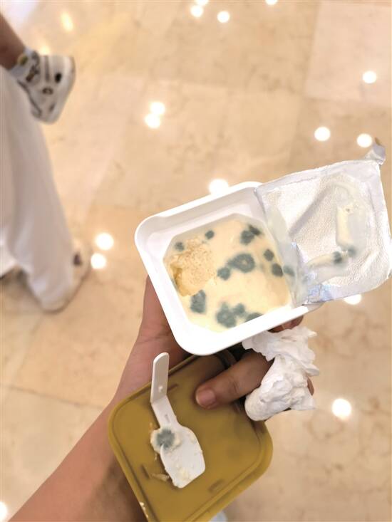 妙可蓝多慕斯奶酪杯出现绿色“霉点” 图/受访者提供