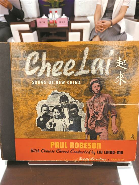 美国歌手保罗·罗伯逊用中英文演唱《义勇军进行曲》等中国抗战歌曲的黑胶唱片《起来Chee Lai》
