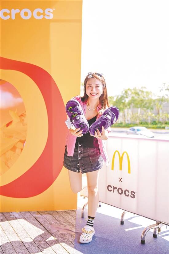 而麦当劳和Crocs推出的联名产品也是今年麦当劳中国的一项重要跨界联名策划。11月10日,记者查询Crocs天猫旗舰店发现,单价639元起的麦当劳与Crocs联名限量版洞洞鞋,不到三天时间,多款已售罄。在深圳 “洞来速” 快闪活动现场,发售了部分联名鞋款。一名正在排队选购的年轻人表示,她是以上两个品牌的粉丝,觉得联名款 “有趣”且“稀缺”。还有人说,觉得联名款穿起来“很潮”。