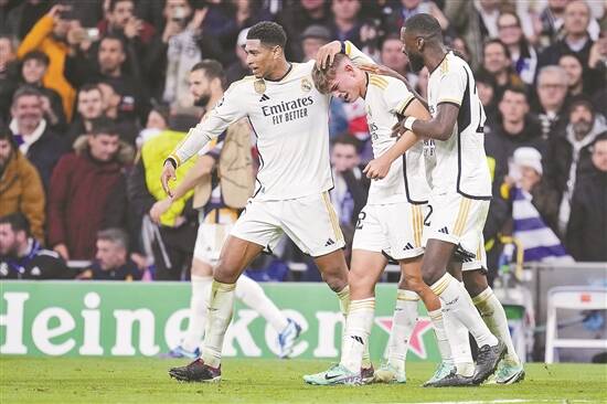 伤停补时第4分钟,贝林厄姆在左路潇洒地用右脚外脚背传中,何塞卢包抄到位将球打进,取得自己职业生涯第一个欧冠进球。皇马新领袖贝林厄姆推着何塞卢到主场球迷看台前庆祝,这名老实巴交的西班牙国脚有点不好意思,为自己本场射门效率低下向皇马球迷道歉。