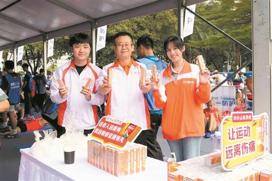 据悉,2023年广马开赛前,敬修堂邀请了公司非遗传承人以及医学运动专家到广州马拉松博览会中开展运动损伤预防等相关讲座,并在终点拉伸区向跑友们提供了跌打万花油作按摩修复之用。