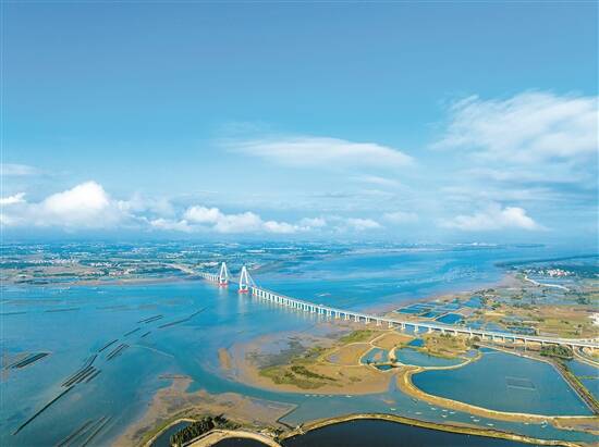 项目通车里程约16.1公里,双向四车道,设计速度120公里/小时。全线主线共设置桥梁11座,总长约5558米,其中控制性工程南三岛大桥,现更名为鹭洲大桥。