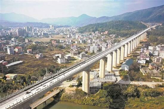 羊城晚报讯 记者严锦程报道:近日,梅龙高铁一、二标段主体工程全部完成,信号工程首件顺利通过评估验收,为梅龙高铁全线通车运营奠定基础。据介绍,梅龙高铁将于今年具备开通条件。春节期间,参建施工单位中铁一局、中铁二十五局共有19个无砟道床工点不停工,确保无砟道床施工按计划完成,为后续全面铺轨打牢基础。