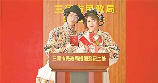 去年11月,他们穿着马面裙领了结婚证。“领证那天,她穿的是白色明制女款龙纹马面裙,我穿的是明制白色龙纹曳撒。”据他回忆,当时民政局的工作人员向他确认是否穿着汉服拍照。他点点头:“我和夫人因汉服而相识,从此结下一辈子的情缘。”