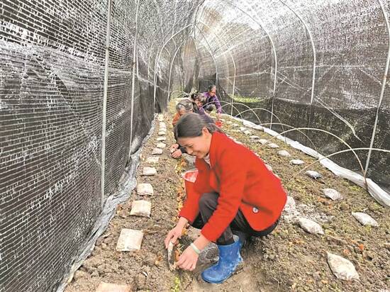 何松文是小拨村的妇女,自从小拨村羊肚菌种植基地建成后,闲时她便到基地来打零工,既能照看家里,也能在基地务工,一年下来,收入可观。“现在家里农事也不忙,我们在基地干活每天能挣100多元,离家近又可以照顾小孩,大家都愿意来这干活。”何松文说道。