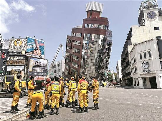 地震造成花莲一栋大楼严重倾斜 新华社发