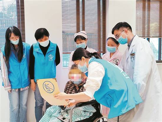 田甜举了个例子。当老人无法讲话时,不少家属都会待在病房里不知所措。而其实,呼唤老人的名字,握着他(她)的手,老人可能会发出声音,或试图睁眼——这些都是老人试图做出反应的积极信号。“我们会鼓励家属一边用热毛巾擦擦老人的身体、做抚触,一边和老人讲一些令他们放心的话,把老人当作宝宝一样。”田甜说。