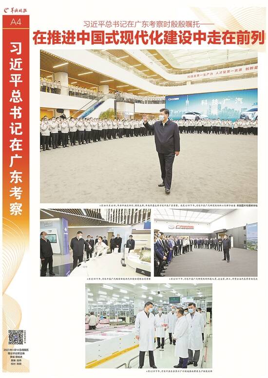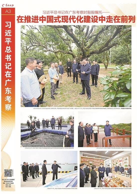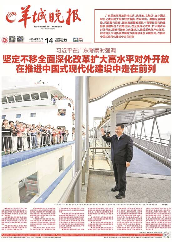2023年4月10日至13日,习近平总书记视察广东,先后到湛江、茂名、广州等地调研指导。图为《羊城晚报》当时推出的部分报道