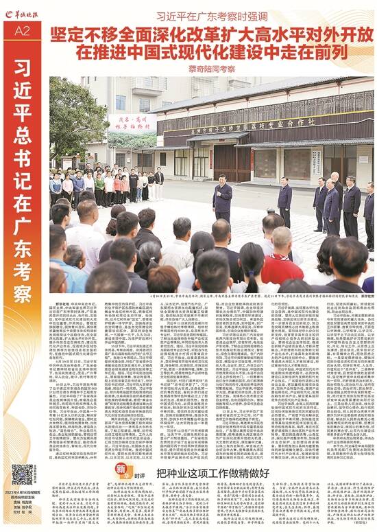 2023年是全面贯彻党的二十大精神的开局之年,习近平总书记首次地方视察选择了广东。从湛江、茂名到广州,4天时间,总书记辗转千里,深入企业、港口、农村,同工人、农民、企业家、科技人员等亲切交流,为广东如何“在推进中国式现代化建设中走在前列”指明方向。