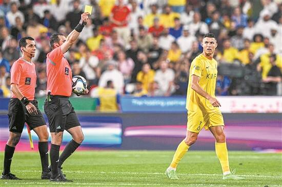 超级巨星C罗再次引发巨大争议,北京时间4月9日在沙特超级杯半决赛中,他在临近终场时因为肘击对手被直接红牌罚下,吃到红牌后还在背后做出向主裁判挥拳的动作。C罗此役表现不佳,他领衔的利雅得胜利以1比2被利雅得新月淘汰出局,在另一场沙超杯半决赛中,吉达联合以2比1战胜麦加统一,于是上赛季沙王杯冠军利雅得新月与上赛季沙超冠军吉达联合会师沙超杯决赛。