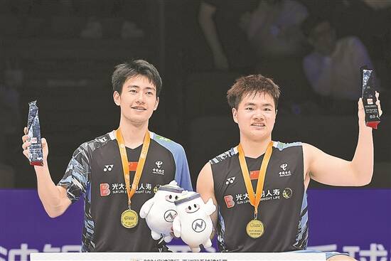 羊城晚报讯 记者苏荇、实习生李玥报道:4月14日,在宁波举行的羽毛球亚锦赛来到决赛日,中国羽毛球队再次展现他们在国际赛场上的强大实力,以三冠三亚收官。男双梁伟铿/王昶战胜马来西亚组合吴世飞/努伊祖丁,如愿登顶亚洲之巅。王祉怡战胜陈雨菲夺得女单冠军,男单李诗沣遗憾夺银。