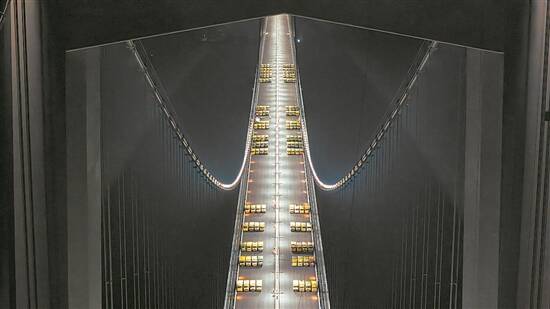 其中,17日晚在主跨1666米的深中通道伶仃洋大桥上的试验,是世界首次在全离岸海中超大跨径悬索桥上完成的荷载试验。经过136辆总重约5000吨的大货车组的“考官”载荷测试,这座世界最大跨径全离岸海中钢箱梁悬索桥顺利过关。