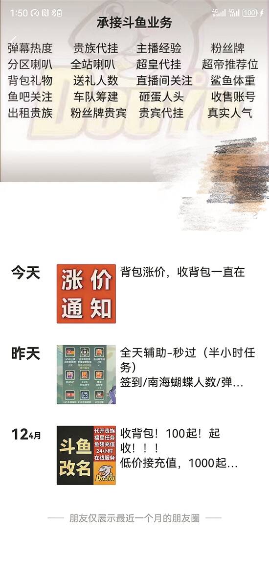 记者又以“卖背包”为由联系上一位背包客,他告诉记者现在的回收价格是6.4折,100元起收,并且其朋友圈还发布了多条“背包涨价,回收背包”的文案;在闲鱼App上搜索“斗鱼背包回收”相关内容时,有70多条链接显示“高价回收斗鱼背包”,回收价均为市场价的6-7折。