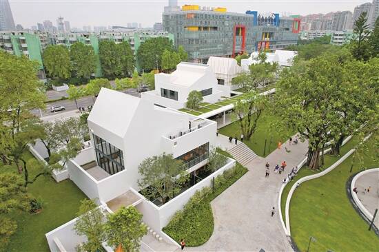 在中山市东区街道繁华地带的公园里,一座白色的现代建筑静静矗立于一片盎然绿意中,这便是5月2日上午开放试运营的华侨公园香山书房——一个承载着市民阅读和文化追求的新空间。
