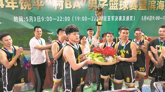羊城晚报讯 记者曾柯权、通讯员饶宣摄影报道:随着篮球稳稳落入篮筐,碰撞篮网发出清脆的声音,四周的掌声、呐喊声、锣鼓声便响了起来,声声不绝于耳……这是在2024年饶平“村BA”男子篮球赛上的精彩剪影。5月3日当天,该系列赛事在潮州市饶平县柘林镇打响总决赛。