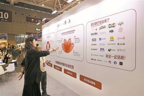 记者在文博会13号馆的腾讯文化出海展区看到,腾讯展示了流媒体平台WeTV、阅读平台WebNovel、游戏发行平台Level Infinite等面向海外市场的数字内容平台。其中,WebNovel上线约3800部中国网文的翻译作品,海外用户已超过2.3亿,覆盖200多个国家和地区,首批入藏大英图书馆的16部网络文学作品都来自阅文集团。