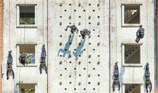 广东公安特警在全警实战大练兵中展示索降技能
