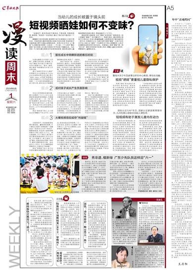 视频“晒娃”很大程度上是当代家长“望子成龙”“望女成凤”心态的投射,也是家长将自身期待折射到了孩子身上,从而让孩子“被动”地成了参与者。在张鸿巍看来,互联网并不是“洪水猛兽”,用短视频记录日常点滴,留住孩子成长中转瞬即逝的难忘时刻,是有意义的,但要优先考虑孩子的身心健康和主体权利,特别要注意保护未成年人隐私。