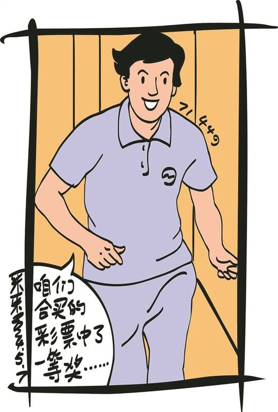 这一天,李明突然激动地跑过来对张大爷说:“咱们合买的彩票中了一等奖,有几百万呢!”