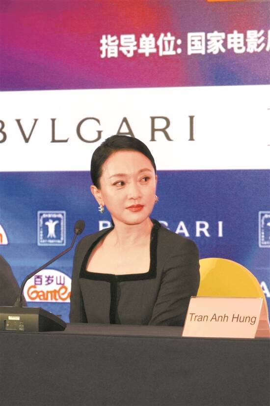 周迅笑着跟坐在身边的陈英雄说:“陈英雄导演、家辉哥和我,其实已经可以拍一部电影了。”陈英雄欣然说:“当然!”梁家辉则用法语说:“太棒了!”