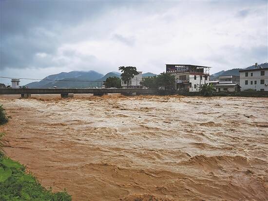 连日暴雨致梅州平远河水上涨,防汛形势严峻 韩路招 摄