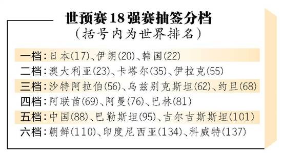 世预赛亚洲区18强赛抽签仪式将于北京时间6月27日在亚足联位于吉隆坡的总部进行,届时18支球队将被分为三个小组,每组6支球队,小组前两名将直接获得2026年世界杯的参赛资格。由于同档球队不会分在同组,这意味着除巴勒斯坦和吉尔吉斯斯坦外,其余15支球队都有可能成为国足在18强赛的对手。 羊城晚报记者 柴智