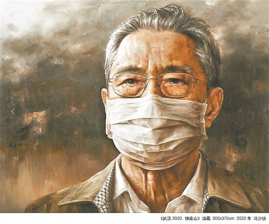 2020年年初,84岁的钟南山院士在抗疫时刻,在灾难面前那种敢于担当、勇于尽责的职业精神感动了无数国人,也激发了冯少协的创作。油画作品《中国共产党党员——钟南山》一经问世,立刻得到美术界和社会各界的充分肯定和认可,该作品在“众志成城——抗疫主题美术作品展”等国家级重要展览上多次亮相,在社会上引起巨大反响。