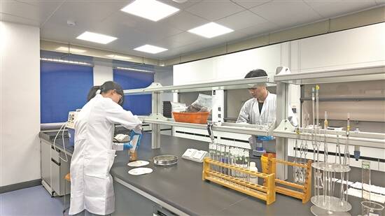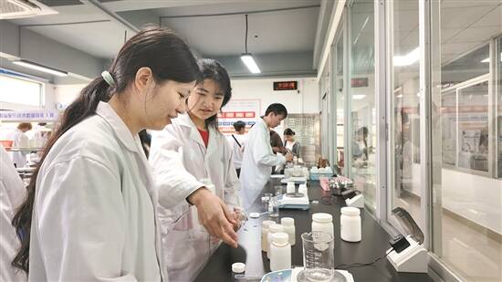 记者来到食品与生物技术学院。在一实训室内,蒸馏机吐着白气,教授张远平正带着两位学生在机器前调试一款茶饮,他们正在实验的这个项目,正是企业交由学校攻关的一个课题。