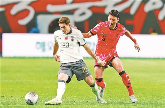 中国队球员拜合拉木·阿卜杜外力(左)在比赛中 新华社资料图