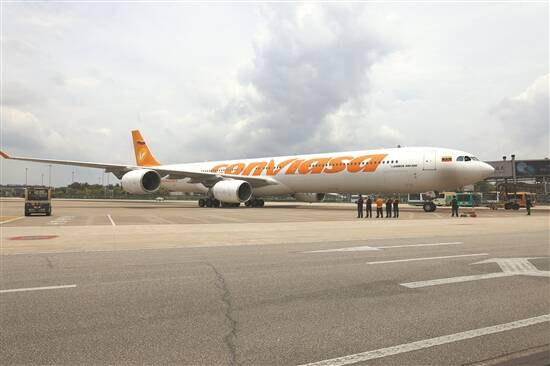一架从委内瑞拉首都起飞的A340型飞机抵达白云国际机场