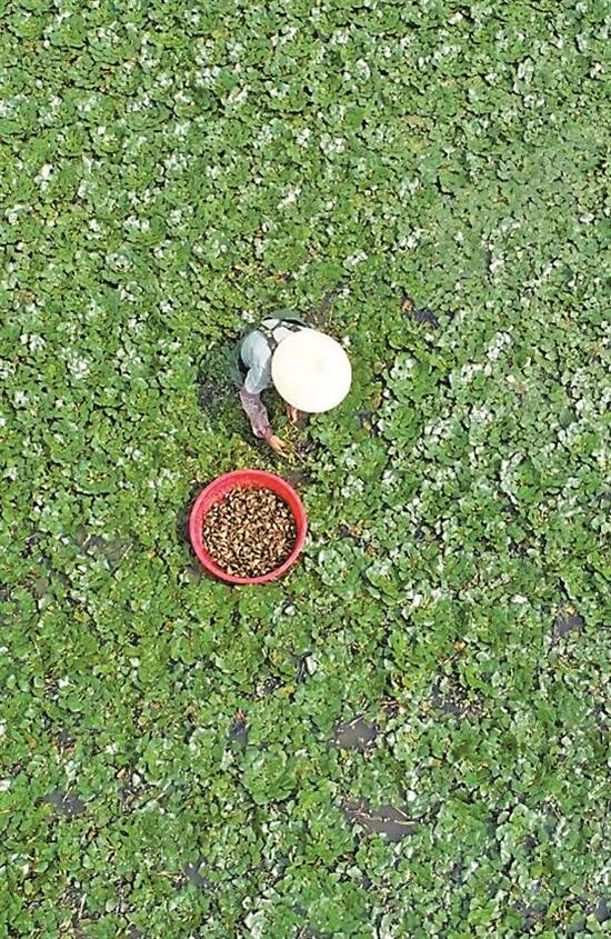 采菱工作看似简单,实则并不轻松。他们需要顶着阴晴不定的天气,长时间在布满菱角藤蔓的池塘中劳作。自菱角成熟以来,参叔和妻子每天清晨6时许便开始忙碌,一天在菱池里待上近10个小时。尽管许多年轻人不愿从事这份辛苦的工作,但他们依旧坚守着这片菱塘,用汗水和勤劳书写着丰收的诗篇。