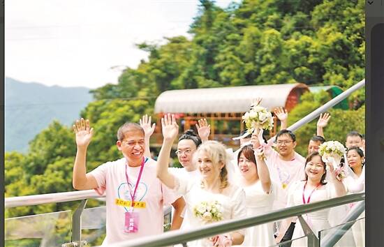 此外,新人们还登上了清新区古龙峡景区的玻璃栈道,俯瞰壮丽的峡山美景,乘坐“悬崖飞车”,实地感受了清远美丽的自然风光。
