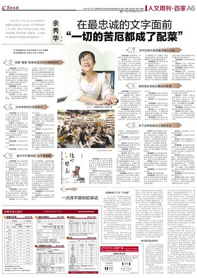 6月28日-7月2日,诗人余秀华带着最新诗集《后山开花》,马不停蹄地在广州、深圳、佛山三地赶赴分享会,活动场场爆满,预约名额一票难求。在此期间,她接受羊城晚报记者独家专访——