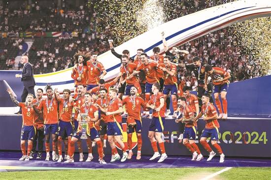 北京时间7月15日,2024欧洲杯决赛在德国首都柏林的奥林匹克体育场上演,西班牙以2比1绝杀英格兰,成为欧洲杯第一支以七战全胜战绩捧起冠军奖杯的球队。继1964年、2008年、2012年之后,西班牙第四次捧起德劳内杯,成为夺冠次数最多的球队,德国以三次夺冠排名第二。
