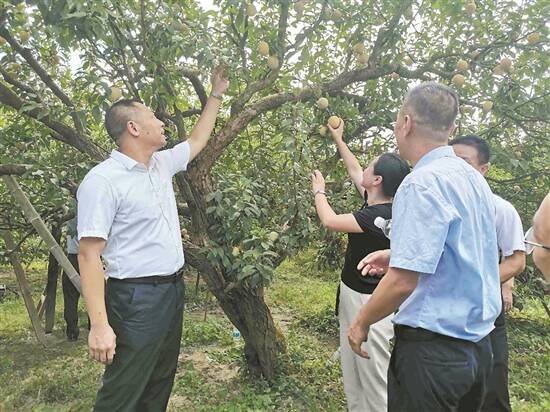 在九峰镇坪石村300多亩的黄金柰李基地内,硕果累累、金黄饱满的柰李挂满枝头,散发出阵阵诱人的果香。