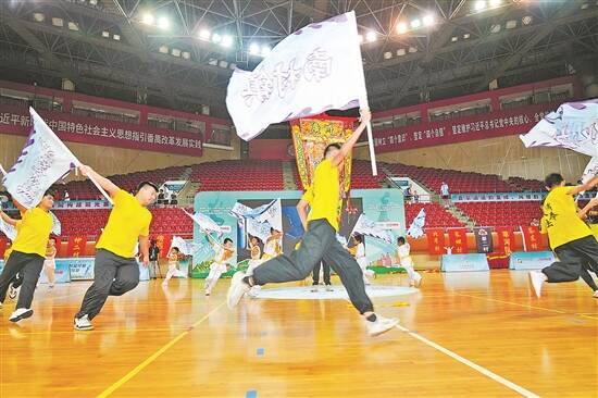 广州市番禺区乡村振兴篮球联赛开幕式上进行的广州非遗黄啸侠拳法表演 羊城晚报记者 曾育文 摄