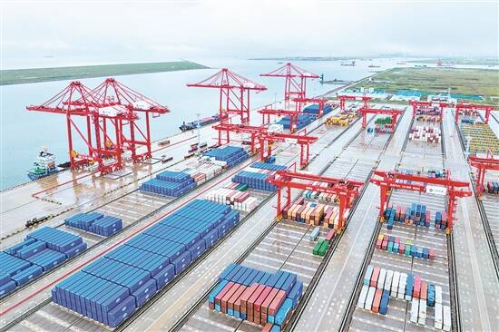 江苏新出海口吕四起步港区是全省首个全智能化、无人化集装箱泊位