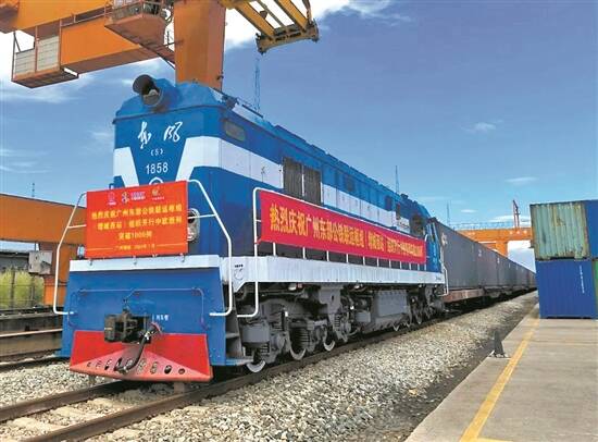羊城晚报讯 记者马灿、通讯员何秋玲报道:7月19日,伴随着列车汽笛声,一列满载日用电器、纺织服饰等货物的国际班列从广州东部公铁联运枢纽(增城西站)发出,经霍尔果斯口岸开往波兰、德国等欧洲国家。据悉,这是广州交投集团在增城西站累计组织开行的第1000列中欧班列。