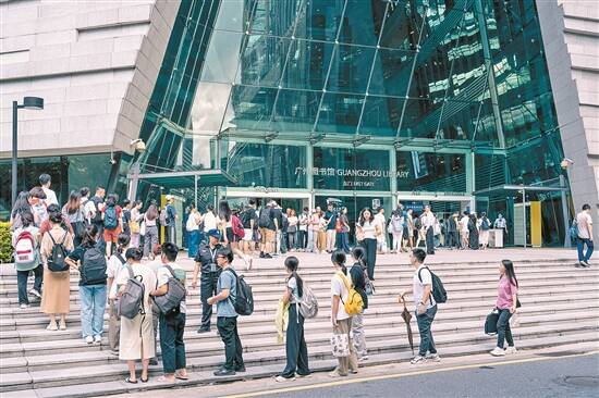 羊城晚报讯 记者黄宙辉、通讯员姜力暄报道:7月22日,记者从广州图书馆(以下简称“广图”)获悉,从今年6月下旬以来,该馆单日入馆人次屡破5万大关,在7月14日更是创下单日入馆人次新纪录,达到59448人次!这也带动了该馆外借文献量的大幅增长。据介绍,单日入馆人次、外借文献量的提高,与该馆从今年5月1日试行的借阅新政策密切相关。