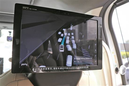 无人驾驶网约车行驶时,车内屏幕显示周边路况