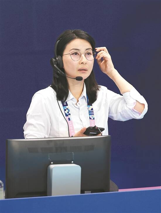 世界泳联跳水技术委员会委员郭晶晶在赛场 新华社发