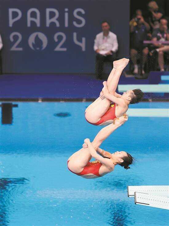 苏:我跟林桂炎在第一个比赛日一大早就去了跳水馆,我们就是为了广东姑娘陈艺文去的,她和搭档昌雅妮也毫无悬念地拿到了金牌。金牌本身没有太多可以讲的地方,但在场馆里,我们看到了很多大咖,比如在比赛结束后,我在从记者席往混采区走的路上,突然看到一个人非常漂亮,旁边有不少观众走上前去跟她合影。原来是谷爱凌!我在北京冬奥会的时候曾经采访过她,就马上飞奔过去又对她进行了一个小采访,她面对媒体时还是很大方,言谈间对中国队夺金也非常兴奋。另外,郭晶晶也担任了这场比赛的裁判长,每一个选手的每一跳之前,郭晶晶都会按铃提示选手开始比赛,选手跳完之后,她还会对裁判席做一个OK的手势,表示这一跳的结束。