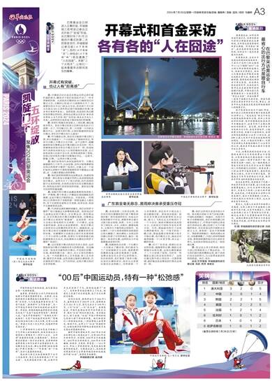 吕:开幕前后往往是采访奥运会的记者们最忙碌的两天,睡觉对于我们来说似乎成了一件非常奢侈的事。比如我在巴黎时间26日晚参加完开幕式之后,交稿时已经是27日凌晨两点半了,我需要在四点半出门赶去火车站,再坐两个半小时火车赶去300公里外的法国中部城镇沙托鲁(射击项目场馆所在地)。虽然很累,但是我们各自都有很多难忘的回忆,现场见证奥运会首金(射击混合团体10米气步枪)和广东首金(跳水女子双人三米板),这样的经历或多或少能冲淡我们的疲惫。