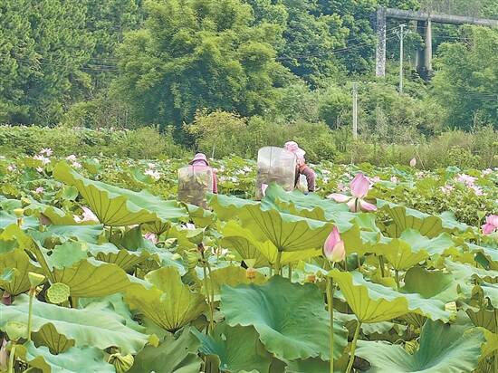 既有观赏价值,又有清甜的时令美味,一颗颗水灵灵、清甜脆嫩的莲子仿佛让暑气瞬间消散。谭焕飞说,待明年地肥情况改善后,莲子产量还将增加,也将为周围农户提供更多采莲的就业机会。