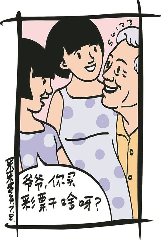 自从被俩孙女封成彩票爷爷,俩孙女常问他:“彩票爷爷,今天你买彩票了吗?”老徐说:“买了!”看着可爱的孙女,老徐心里比吃了蜜都甜。