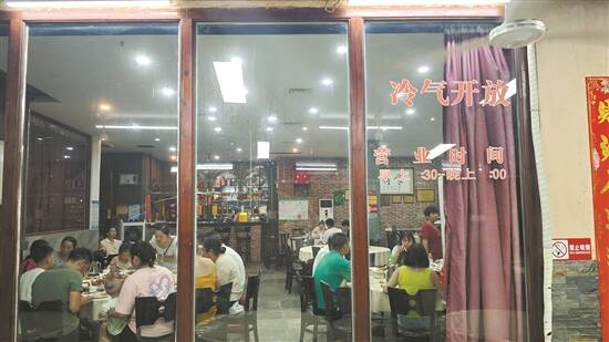 岛上商铺玻璃上贴着“冷气开放”四字