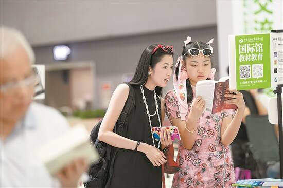 南国书香节开幕当天,两位摩登女士正在挑书,阅读已经成为新时尚