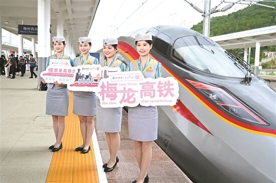 据悉,龙龙高铁梅龙段开通后,广州、深圳等粤港澳大湾区城市到梅州的最短通行时间将缩至1.5小时左右。