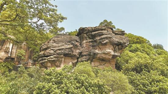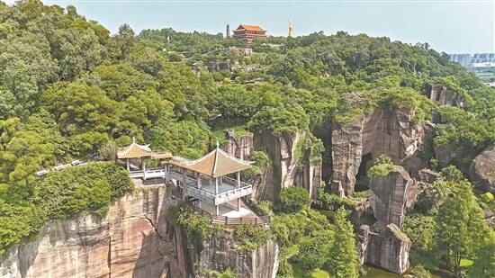 狮子石身后守护着一片莲花山古采石场。它是我国已知最早的非金属采矿场,也是古代岭南采石业的源头之一。如今,这里已是广州番禺莲花山旅游风景区的重要组成部分,自然景观和先民采石留下的痕迹已然融为一体,形成了独特的“人工丹霞”景观。